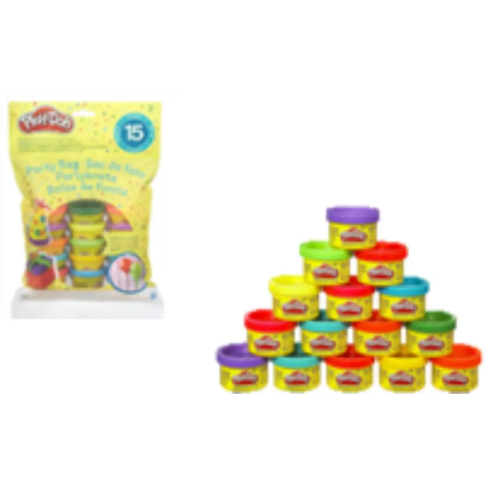Party fun with Play-Doh! 15 small tins of Play-Doh dough of 28gm in different colours make the dough party perfect. Also great as party favour or for the school bag. Includes sticker. Note: Contains wheat.