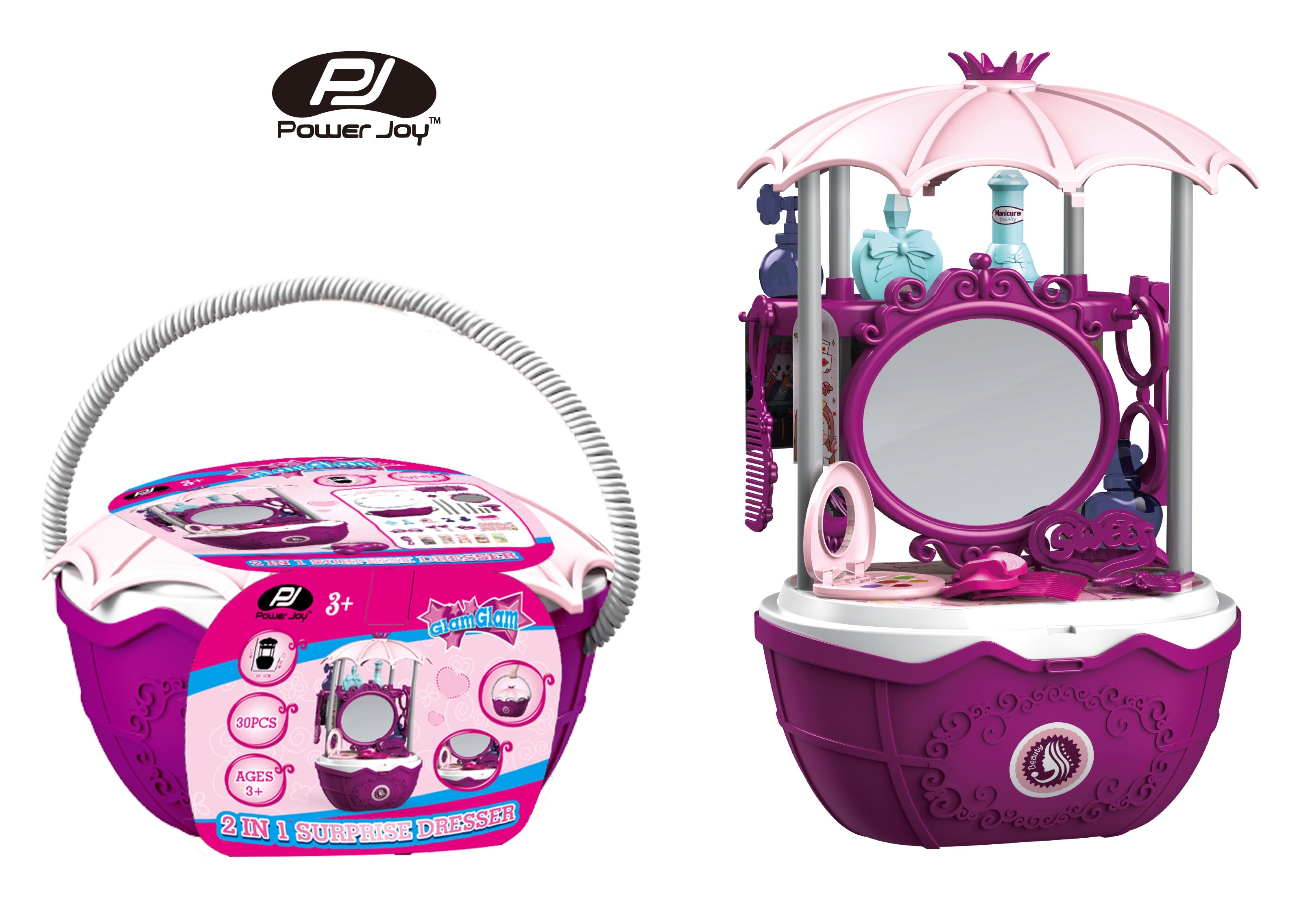 Organize and play with the Power Joy Glamglam Surprise Dresser 2-in-1! This versatile playset transforms into a stylish dresser with hidden compartments, perfect for storing mini cosmetics, accessories, or surprises. Ideal for imaginative beauty play, role-playing, and creative organization, it provides hours of fun and discovery.