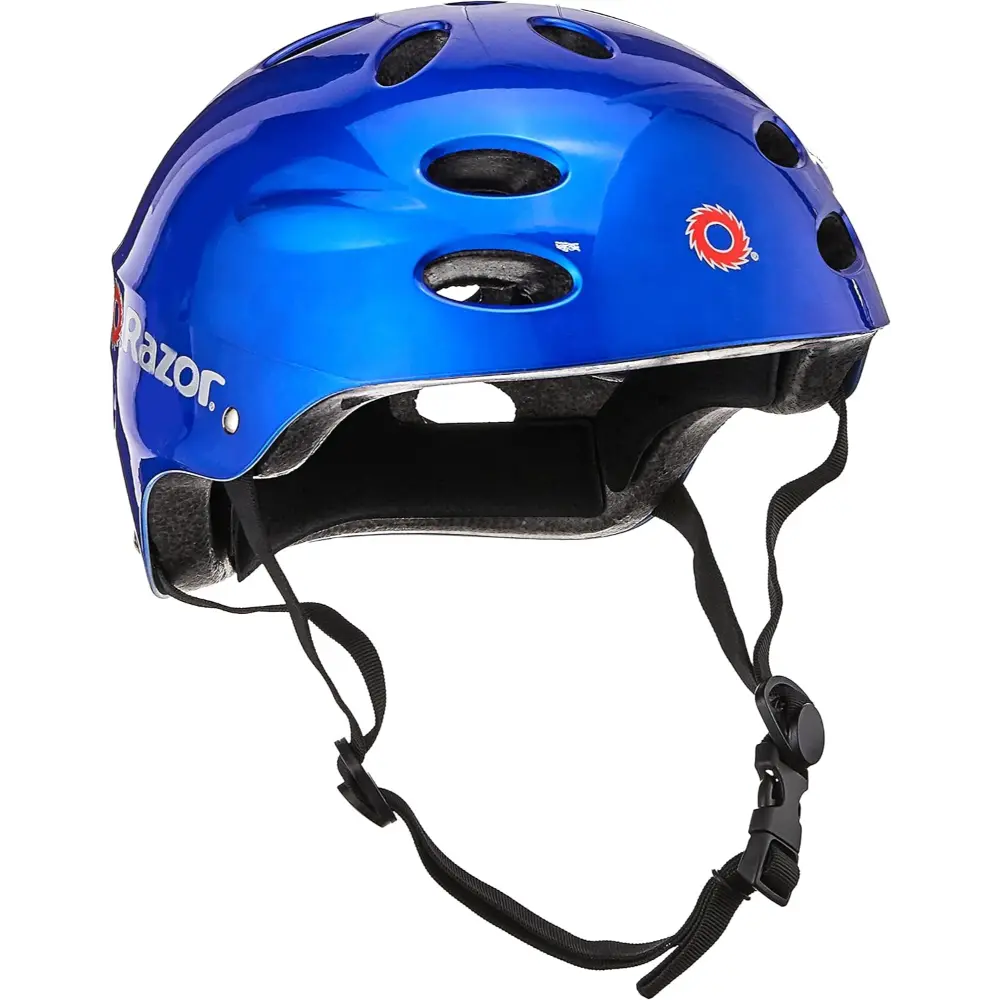Keep your child safe and comfortable with the Razor V-17 Multi-Sport Helmet, perfect for biking, skating, and other activities requiring protective headgear. Designed for children ages 5 to 8, this helmet features ergonomic interior padding and an additional sizing pad set for a secure, customized fit. The sleek gloss finish and 17 ventilation vents ensure both style and comfort while keeping heads cool. Side-release buckles make adjusting and fastening the chin strap quick and easy. Compliant with CPSC standards, the Razor V-17 provides superior safety for young riders.