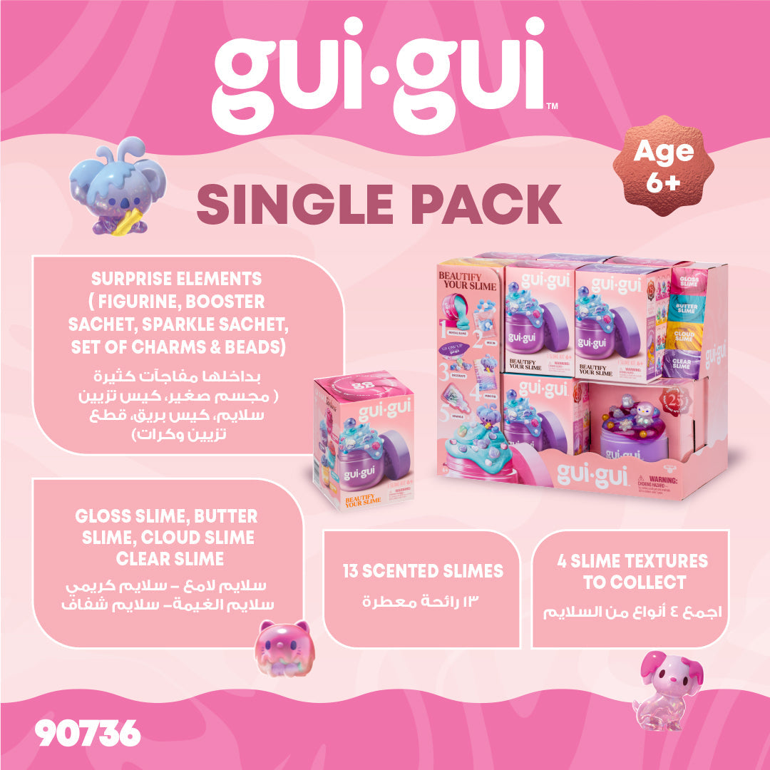 The Gui-Gui Slime Kit is a fun and creative DIY set designed to let kids personalize and enhance their slime experience. Each kit includes a vibrant, high-quality slime base with decorative embellishments to mix in, allowing for a customized sensory play experience. With various colors and decorative elements, the Gui-Gui Slime Kit is perfect for slime lovers who enjoy crafting their own unique creations.