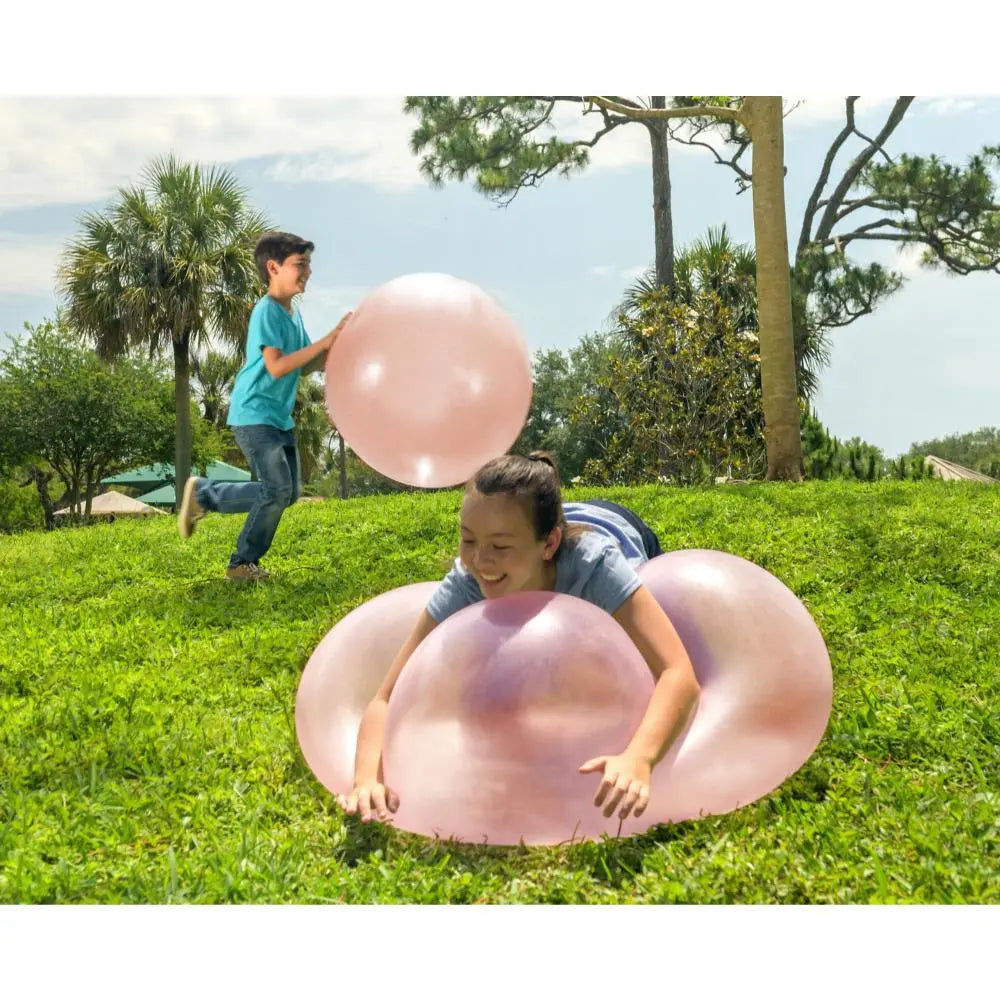 It looks like a BUBBLE, plays like a BALL! Now it comes with a brand new valve for super easy inflation. The new Super Wubble bubble ball inflates up to 30 inches in just minutes and is designed to be blown up with your mouth! Just blow into the patented, self-sealing valve or you can use almost any pump you have. Made from revolutionary Xpandium TM, Super Wubble is up to four times stronger and more tear-resistant than the original Wubble. Unlike other balls, it’s super soft, lightweight and engineered to be gentle. Enjoy hours of squishy, squashy, bouncy fun as you kick it, whack it, throw it, bounce it and even sit on it!