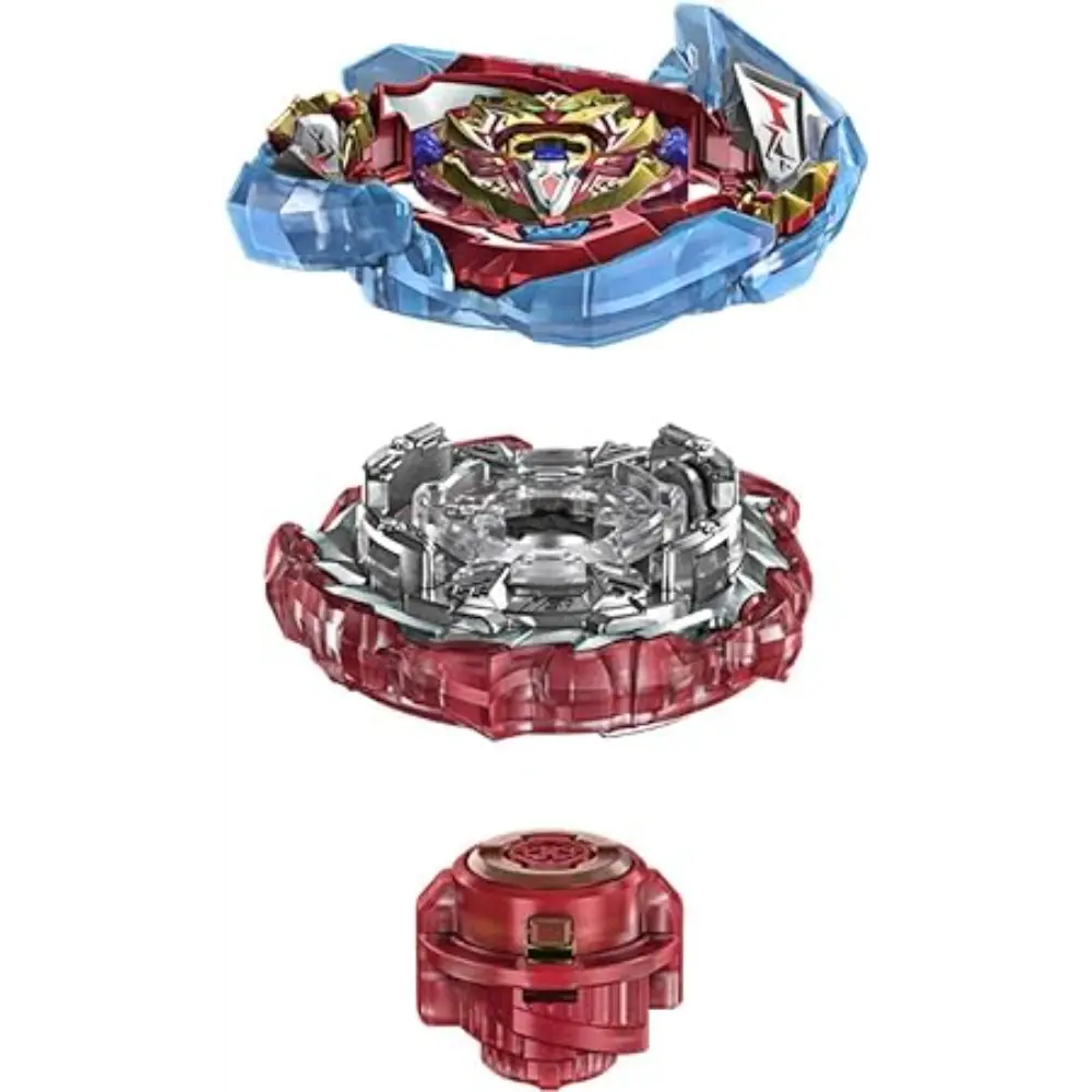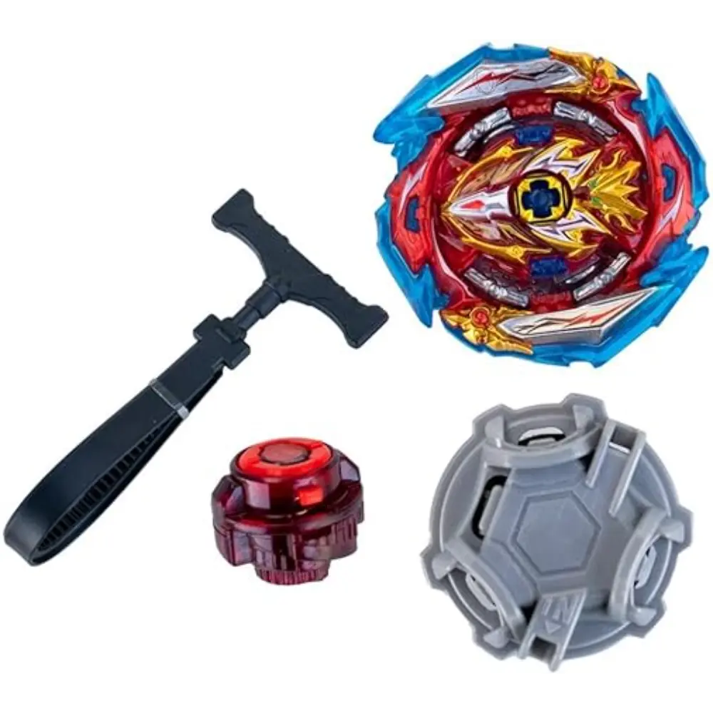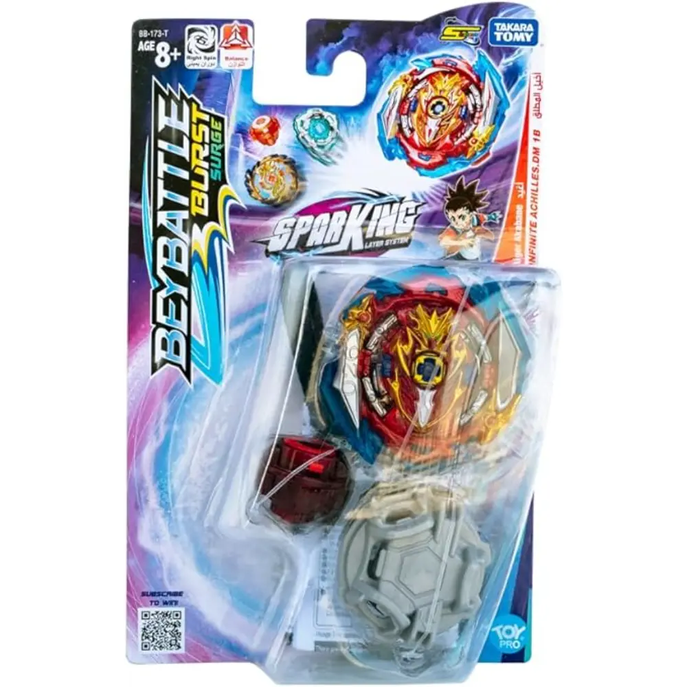 Take your battles to the next level with the Takara Tomy Beyblade Beybattle Burst Infinite Achilles S5, a right-spin Superking Chip known for its armored face and shield design. While its average weight makes it lighter than other metal-infused Superking Chips, Infinite Achilles S5 stands out with its Dimension Performance Tip that includes a manual height-changing feature. This tip allows strategic customization, combining a stepped spiral design with a rubber sharp tip for aggressive control. With improved burst resistance thanks to a stronger spring lock, this Beyblade is ready for intense Beybattle action.