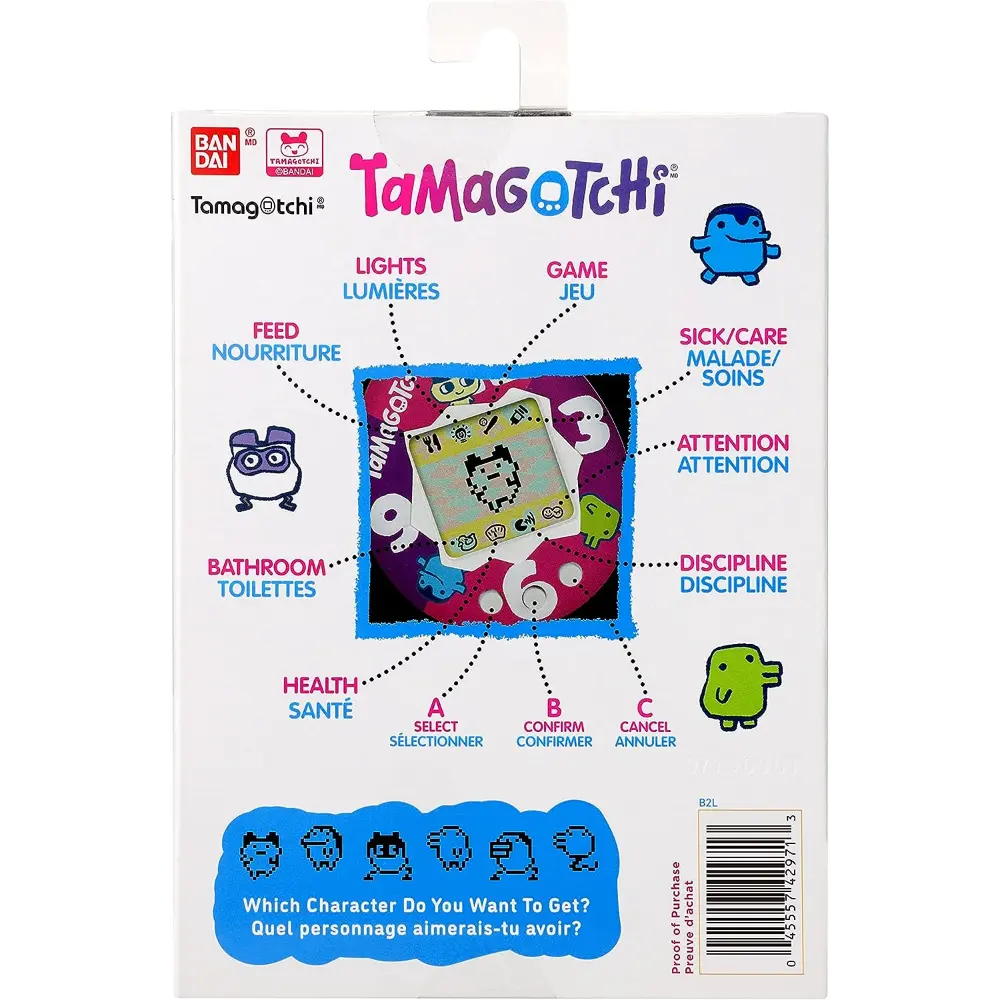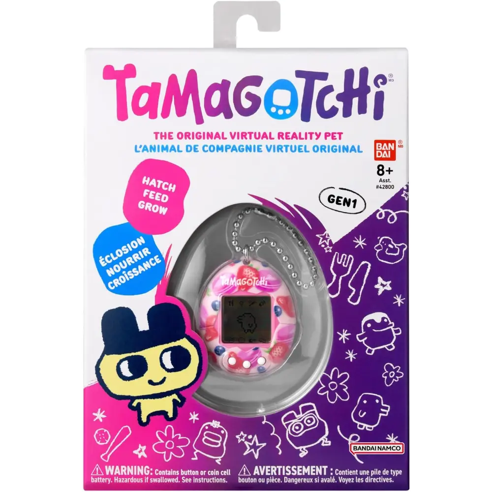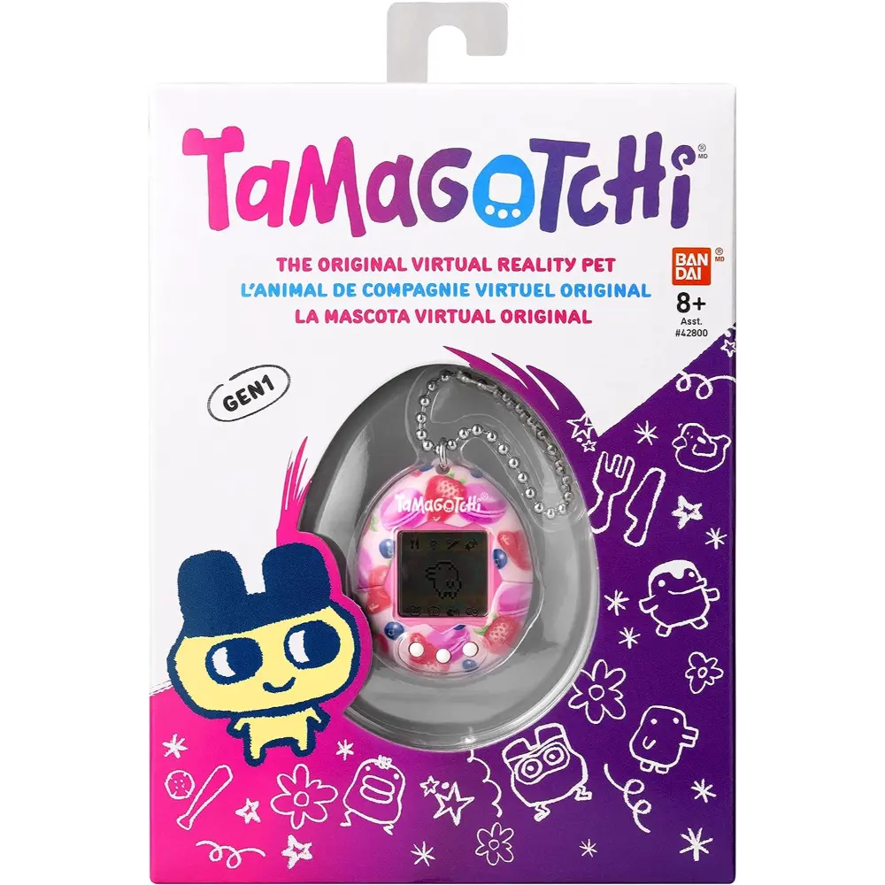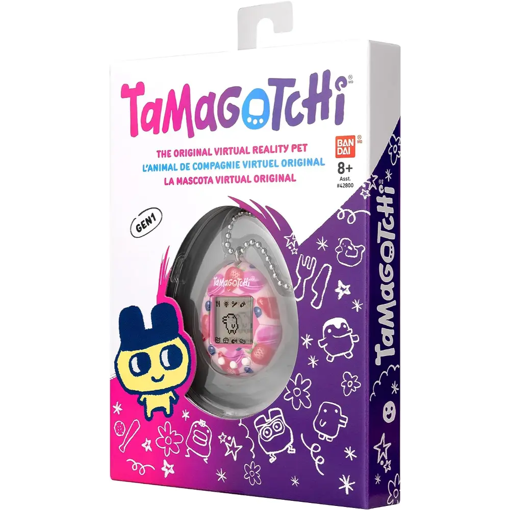 The Original digital pet you loved in 1997 is back in a shell,Berry Delicious! With original generation 1 programming, you feed it, clean up after it, take care of it and even discipline it if it's bothering you when it doesn't need you! Plus, you can play the Character game! How you take care of your Tamagotchi and how you do in the game, determines which Adult Tamagotchi youll get! Includes the CR2032 battery and attaches to your bag so it goes everywhere! Ages 8+