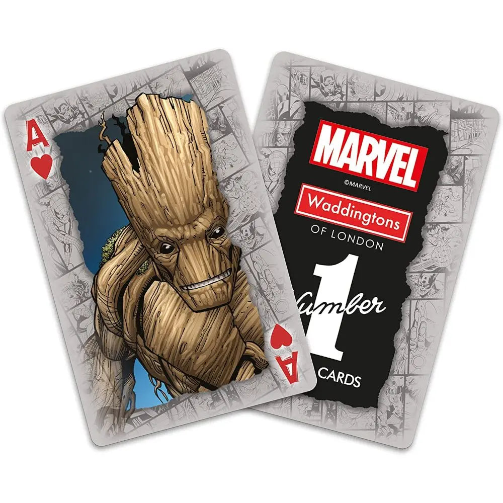 Unite with your favourite Marvel characters including the valiant Captain America, the formidable Thor and the invincible Iron Man, alongside 52 of your much-loved Marvel heroes and much-loathed villains. Will Spider-Man help you win Snap? Or The Guardians of the Galaxy help you defeat your Go-Fish nemesis? Play all your favourite card games with the Marvel Waddingtons No 1 Playing Cards deck.
